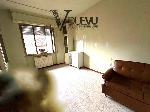 Querceta center Apartment with lift on the first floor of 106 m2 and 14 m2 of terrace. The Apartment consists of an entrance hall, semi-habitable kitchen, living room which opens onto the beautiful terrace with curtain, three bedrooms with balconies and bathroom. The Apartment needs to be refreshed and renovated.