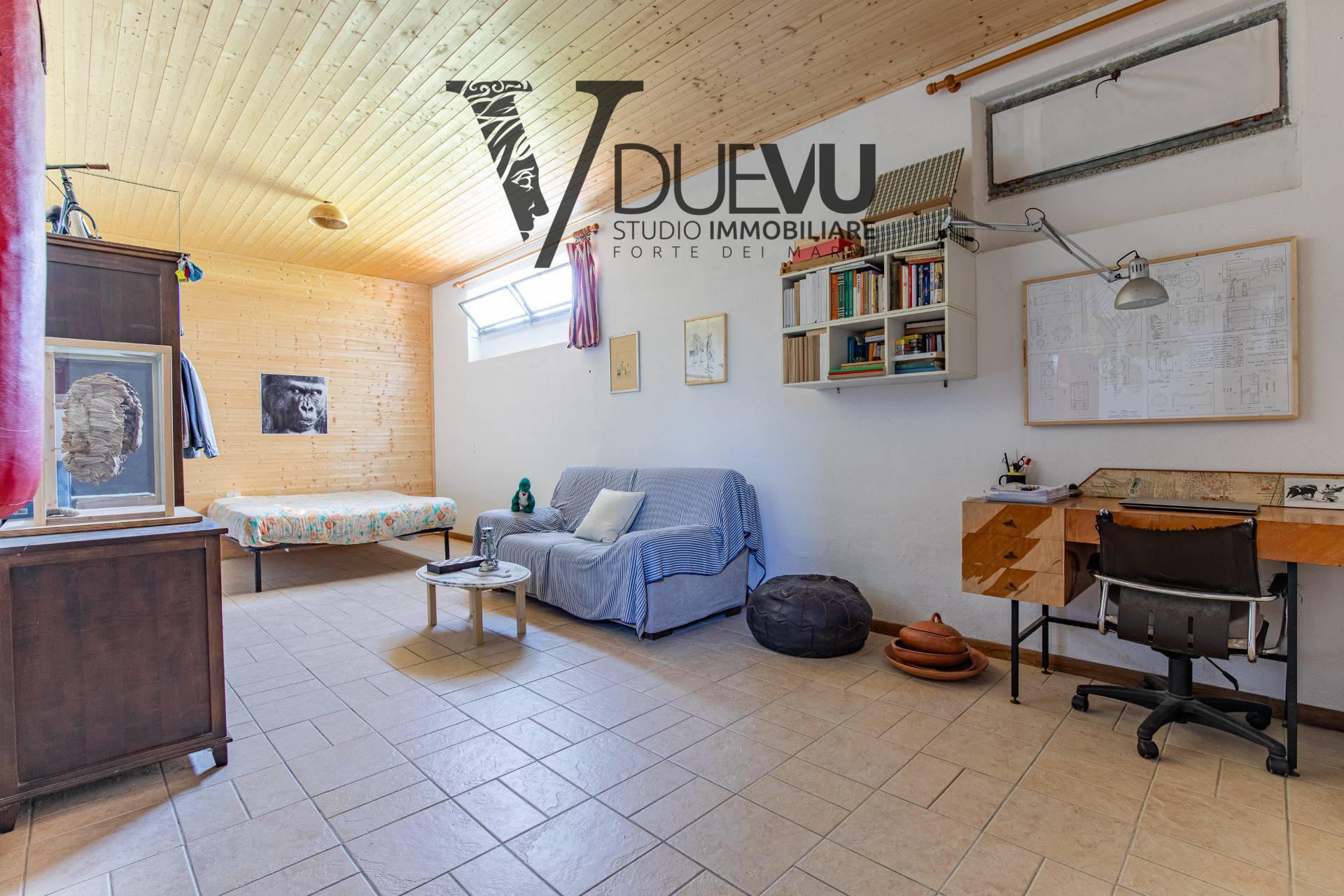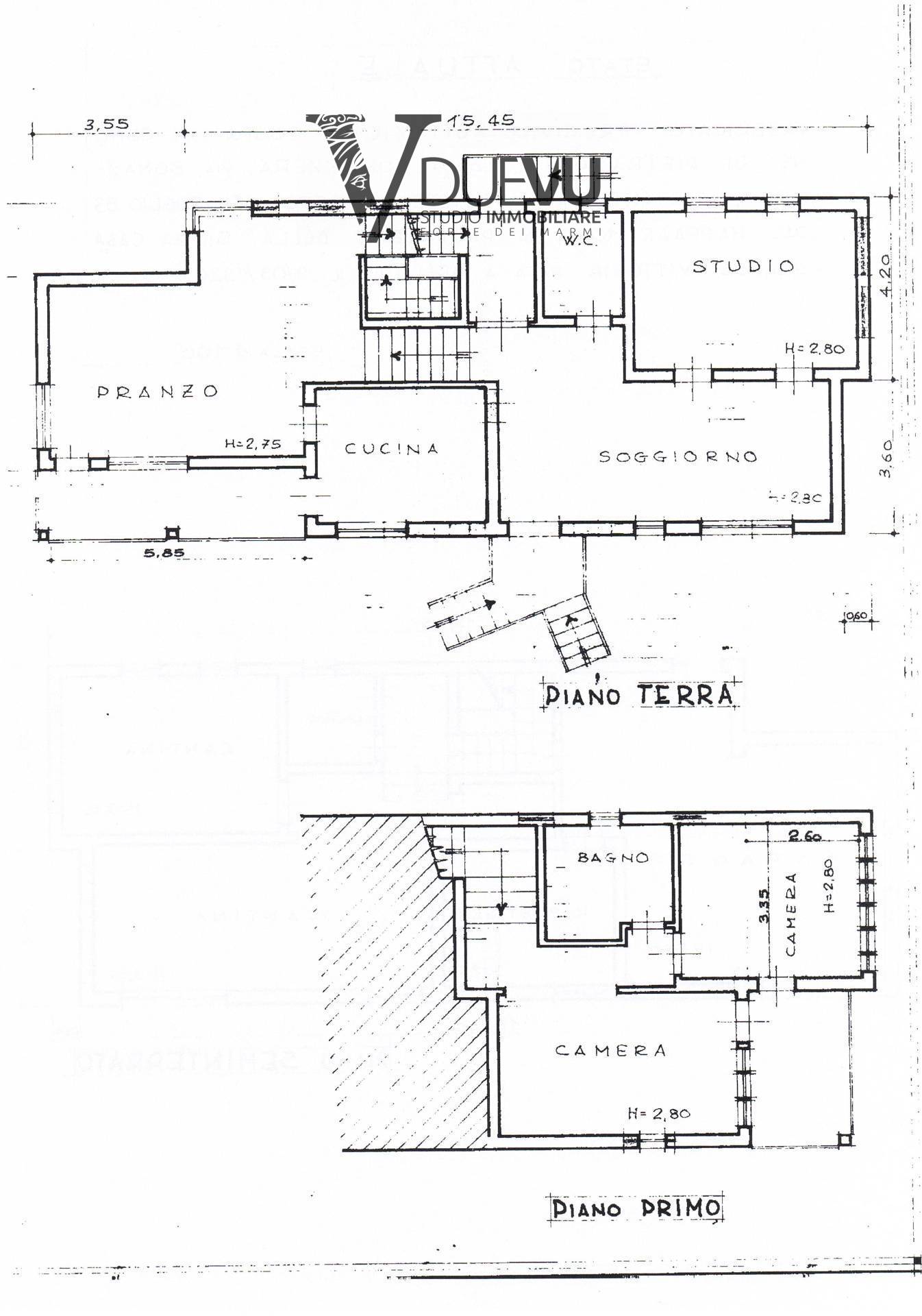 The Villa of approximately 197 m2 is spread over several staggered levels. On the mezzanine floor we find the entrance into the bright living room, a large room that can be used as a study or to be divided and create two single bedrooms as in reality, bathroom; going up half a floor we find the kitchen and a living room with dining room from which you can access a balcony; Going up another half floor we have the sleeping area with two bright double bedrooms with a large balcony and a bathroom. On the ground floor we find the garage of approximately 49 m2 which is connected to the house by an internal staircase, from which you access the cellar part which is made up of two large rooms.