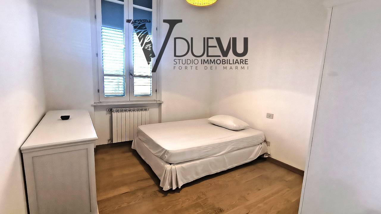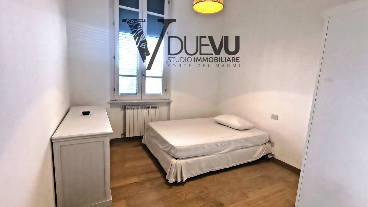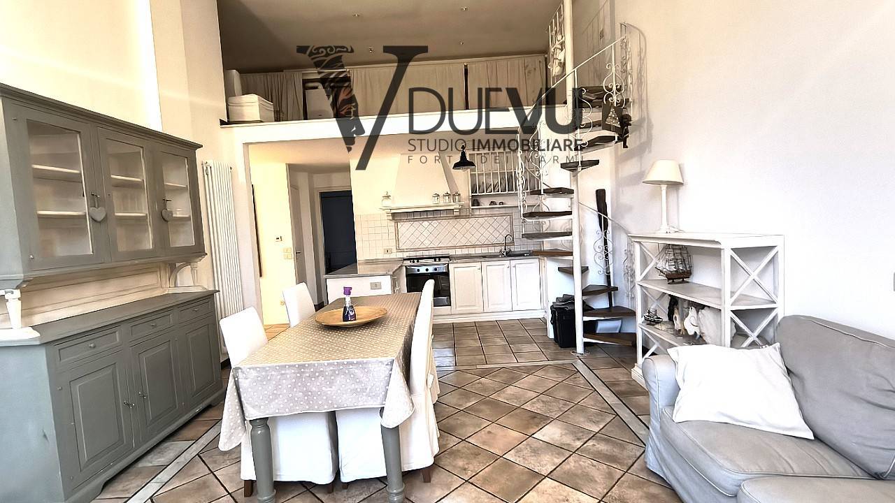 Centrally located Apartment in Querceta, convenient for all essential services. The well-maintained Apartment has a parking space, an elevator, and a cellar of approximately 9 square meters. It comprises an entrance hall, a bright and spacious living area with an open-plan kitchen, a small but very useful mezzanine, a double bedroom, a double bedroom with a bathroom with a shower, and a bathroom with a bathtub.