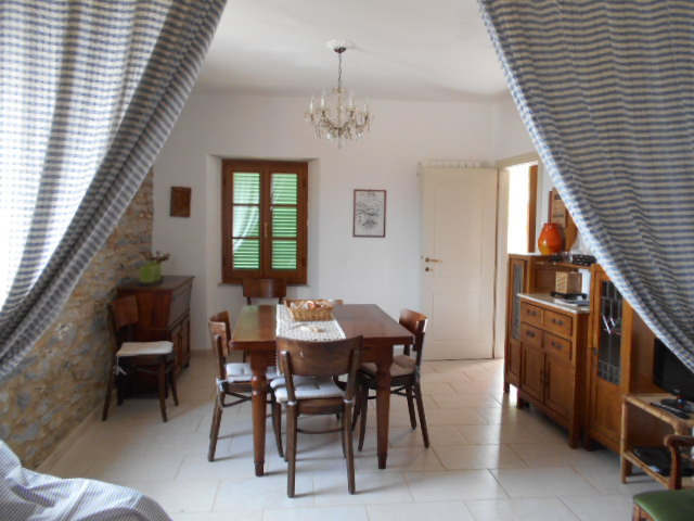 Apartment on the first floor of a cottage of only two Apartments with exclusive garden and independent entrance. It is located in Fabiano village in the hinterland of Versilia just 14 km from Fort dei Marmi with beautiful views of the coast. The Apartment is easily accessible on foot from the village car park. It consists of entrance, large living and dining, semi-living kitchen, bathroom with bathtub and room with shower room. In the garden depandance consisting of a room and a bathroom. Beautiful garden and panoramic terrace.