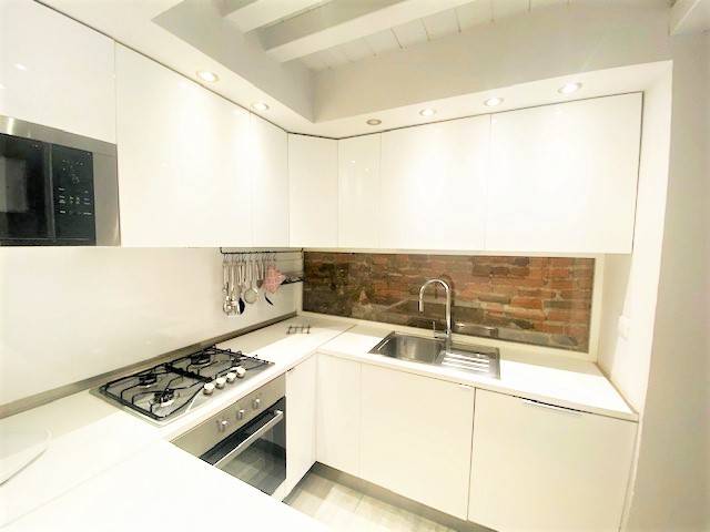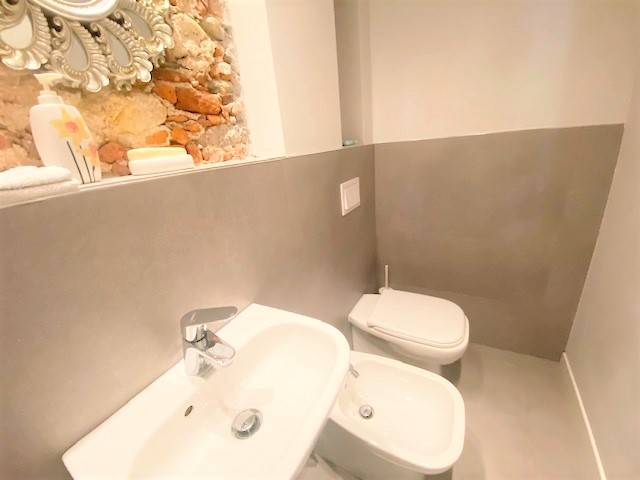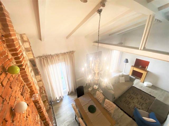 Pietrasanta historic center Apartment on the second and last floor of a building of only four Apartments. The Apartment has been finely restored highlighting the old pre-existing walls. It consists of an entrance hall, living room with dining room and kitchen, double bedroom with bathroom, bathroom. Mezzanine overlooking the living area consisting of a double bedroom, bathroom with toilet and bathroom with shower, double bedroom.