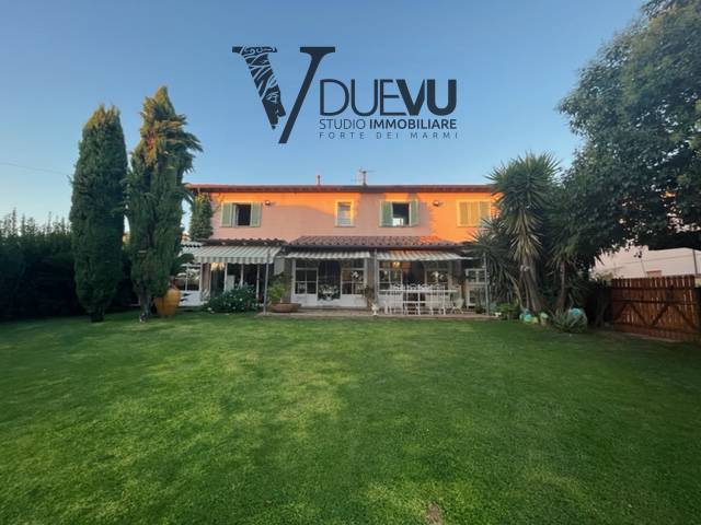 Bella Villa a Querceta in zona tranquilla, a due passi dal centro e da tutti i servizi di prima necessità, con un bellissimo giardino, verande aperte e chiuse e posto auto. La Villa è composta al piano terra da: ingresso in soggiorno con cucina a vista, veranda chiusa a vetri che si affaccia sul giardino e su altro portico aperto ed arredato con tavolo per pranzi o cene all'aperto. Piccolo ufficio o anticamera, camera matrimoniale con bagno, bagno ospiti. Al primo piano: due camere matrimoniali e due bagni. La casa è ben curata ed arredata. Piccola piscina fuori terra.