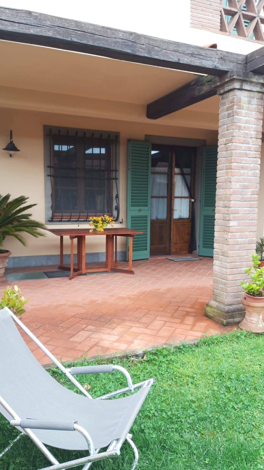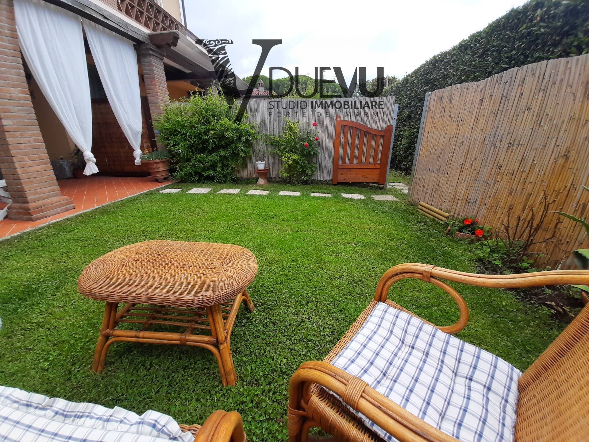 Villetta a schiera in zona centro a Forte dei Marmi, con posto auto e giardino. Al piano terra troviamo: cucina, soggiorno con portico e bagno. Al primo piano: due camere con due bagni e nel piano mansardato una camera con bagno